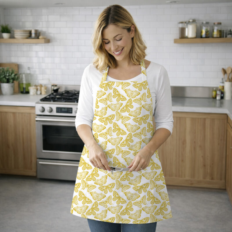 AKHVI Butterfly Print Apron for Women Girls Cooking Baking Kitchen Wear
