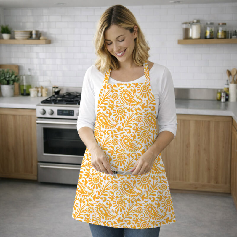 AKHVI Premium and Traditional Paisley Print Orange Apron for Cooking & Baking (Copy)